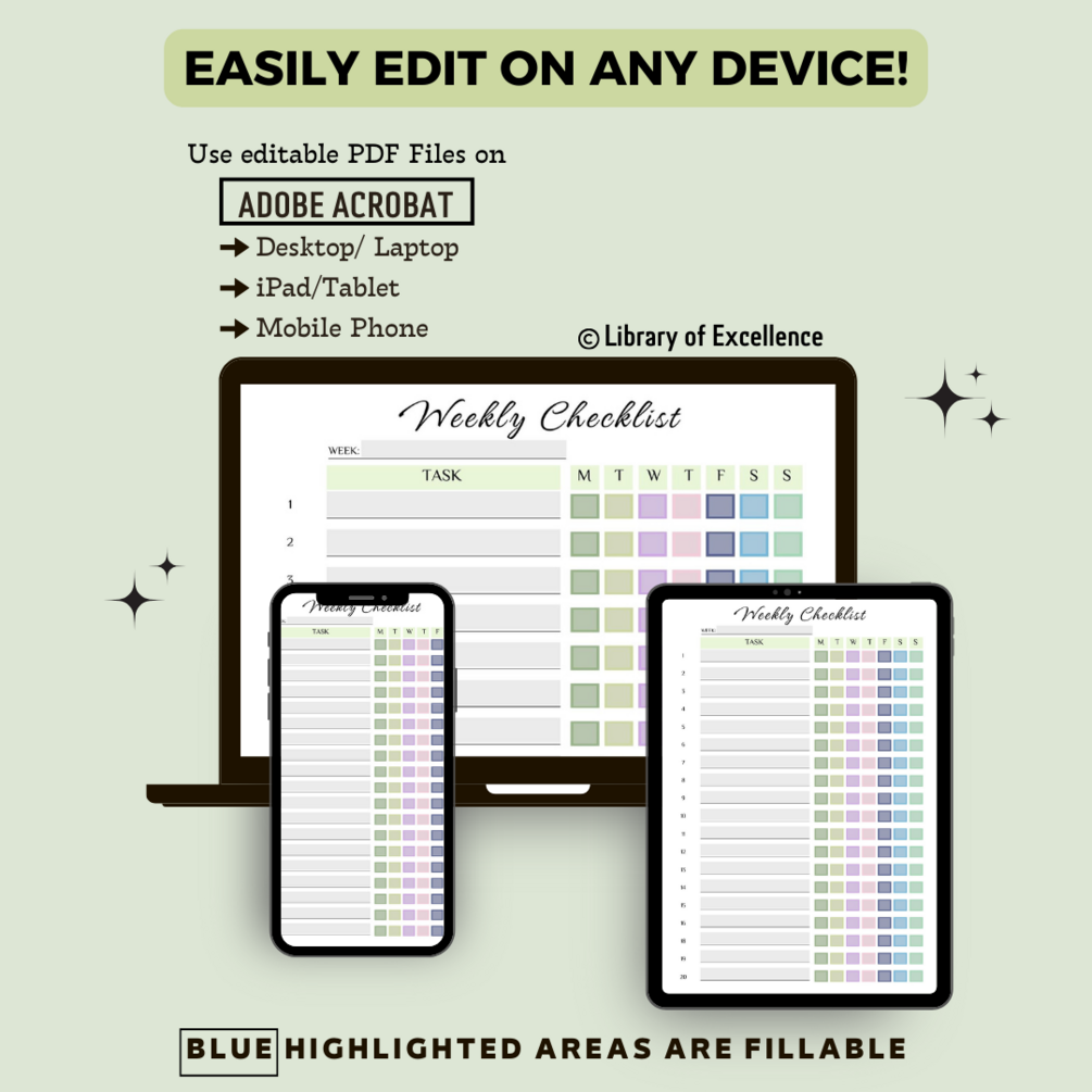 √ Customization: Easily fill in the planner using the free Adobe Acrobat Reader on your computer, smartphone, or tablet.